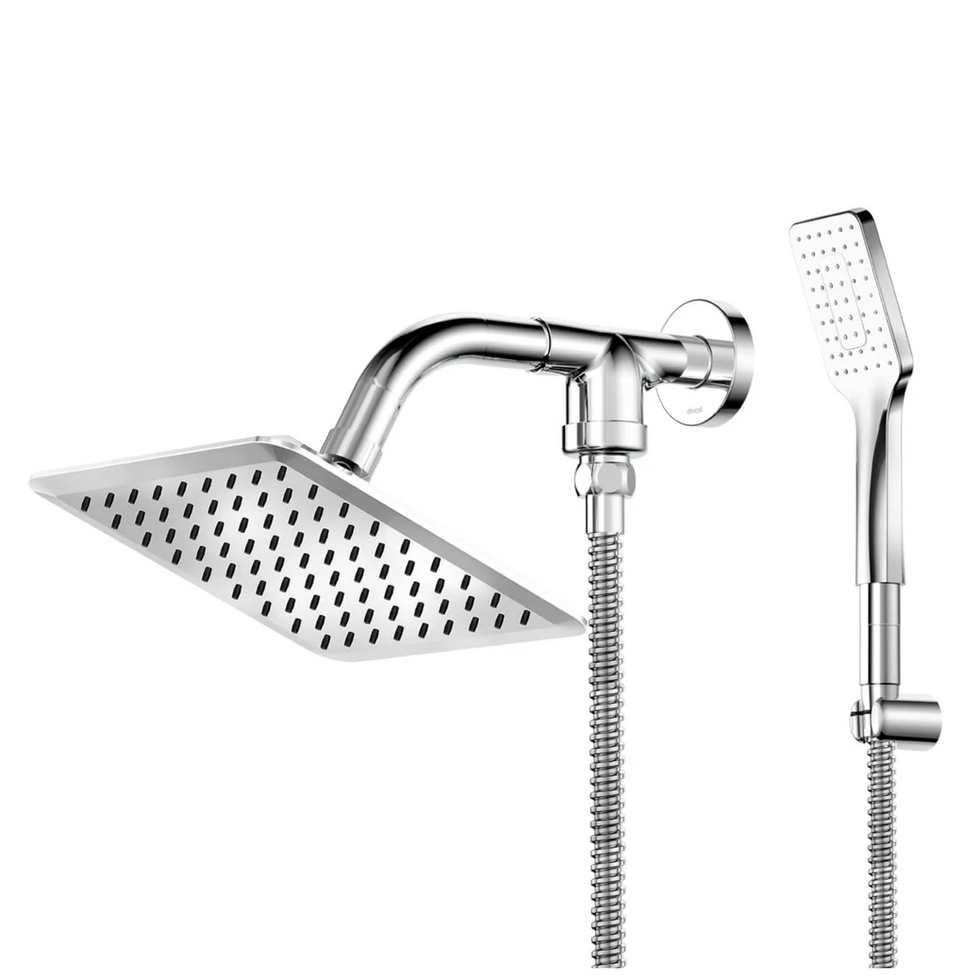 A delicadeza da forma do novo chuveiro DocolSlim contrasta com a potência, abundância e o conforto do banho que ele proporciona. A cabeça quadrada de dimensão generosa (17x17cm.) permite o espaçamento dos 81 crivos de forma homogênea, distribuindo os jatos de água para criar uma ampla área de banho. A articulação da cabeça permite ainda mais versatilidade na instalação.